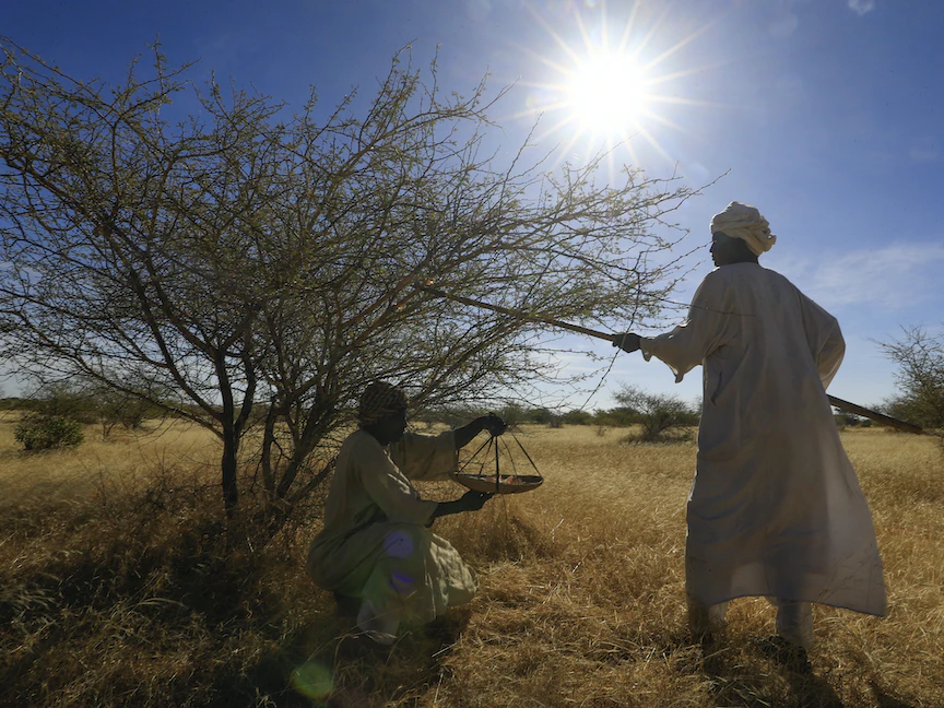 ويكافح البشر للتكيف مع المناخ الجاف والتصحر. وتضاف إلى الجفاف تقلبات الأسعار العالمية للصمغ العربي.
