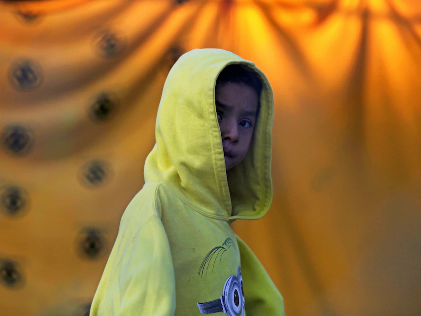 طفل مهاجر يطلب اللجوء في الولايات المتحدة في مخيم للمهاجرين بماتاموروس بالمكسيك - 19 فبراير 2021. - REUTERS