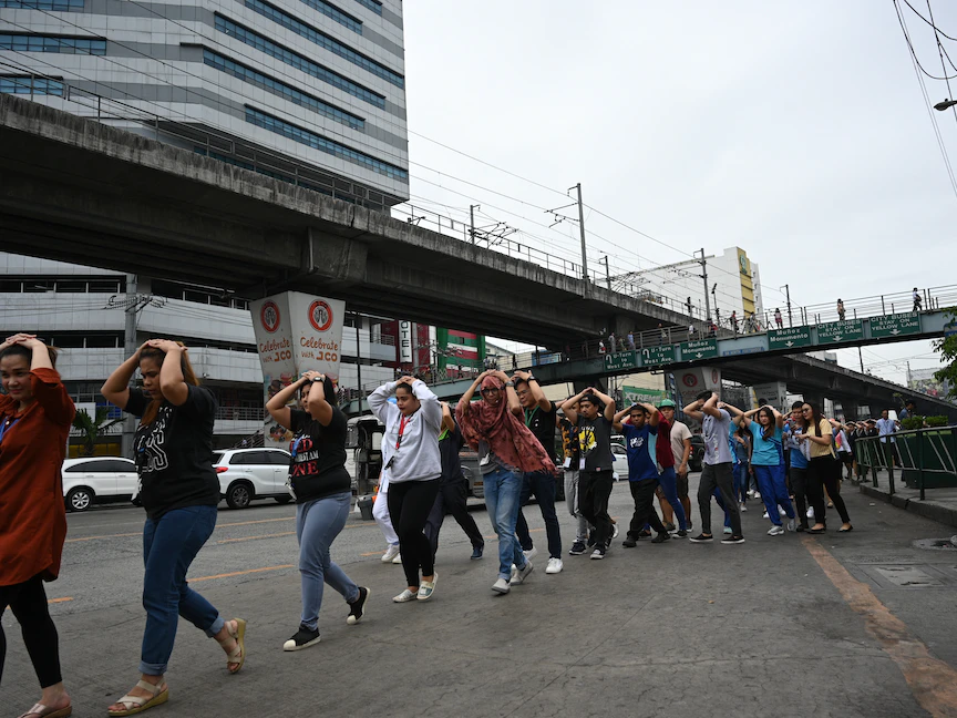 - قم بإجراء التجارب الجماعية للتدرب على مواجهة مخاطر الزلازل بشكل دوري.