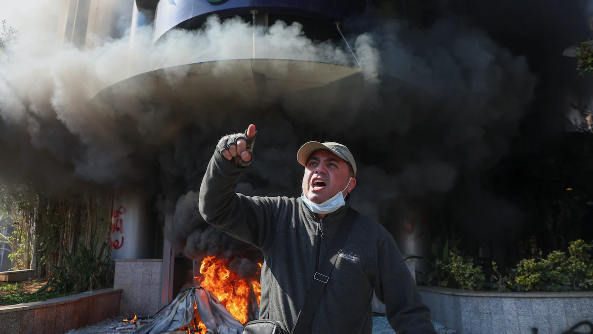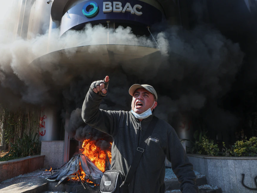 حطم عشرات المحتجين في لبنان فروعاً لمصارف تجارية في حي بالعاصمة بيروت الخميس، وأضرموا فيها النار كما قطعوا بعض الطرق، اعتراضاً على القيود غير الرسمية المفروضة على عمليات السحب والقائمة منذ سنوات، إضافة إلى الأوضاع الاقتصادية الآخذة في التدهور بسرعة.