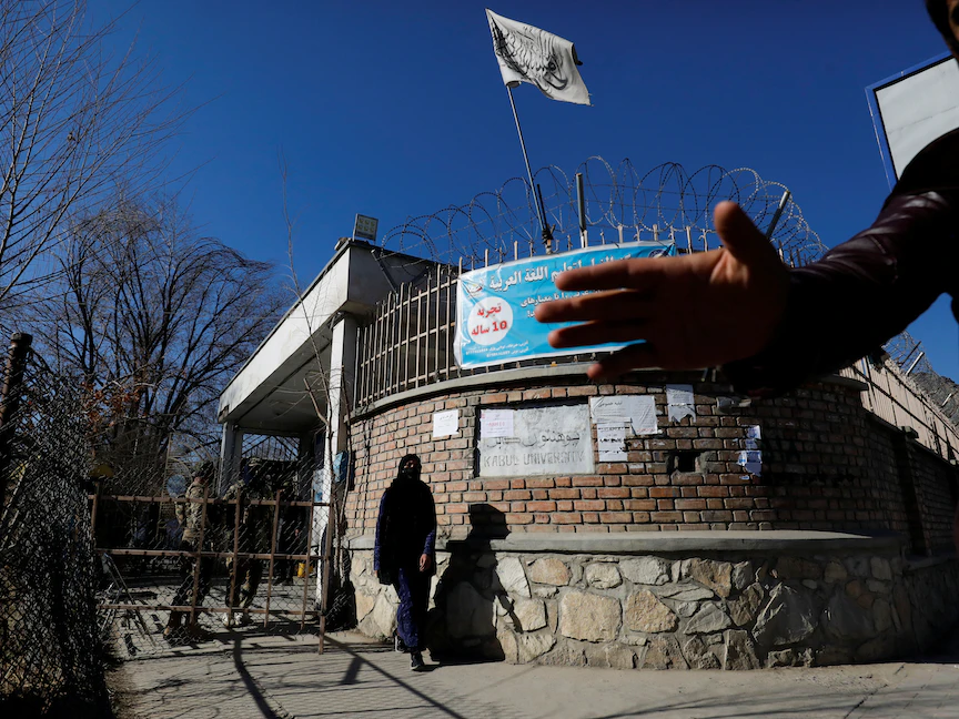 وفي نهاية ديسمبر الماضي، حظر وزير التعليم العالي ندا محمد نديم على النساء ارتياد الجامعات، وبرّر قراره بـ"عدم التزام الطالبات، التعليمات بشأن الحجاب"، في إشارة إلى إلزامية تغطية المرأة رأسها ووجهها وجسدها بالكامل في أفغانستان.