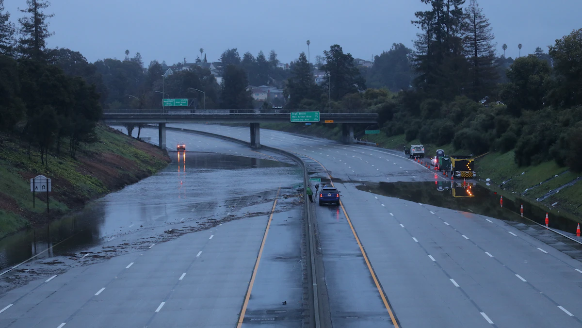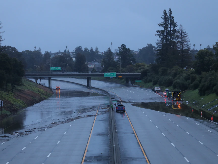 إغلاق جزء من الطريق السريع 580 بسبب الفيضانات في أوكلاند بولاية كاليفورنيا الأميركية. 10 مارس 2023 - Reuters