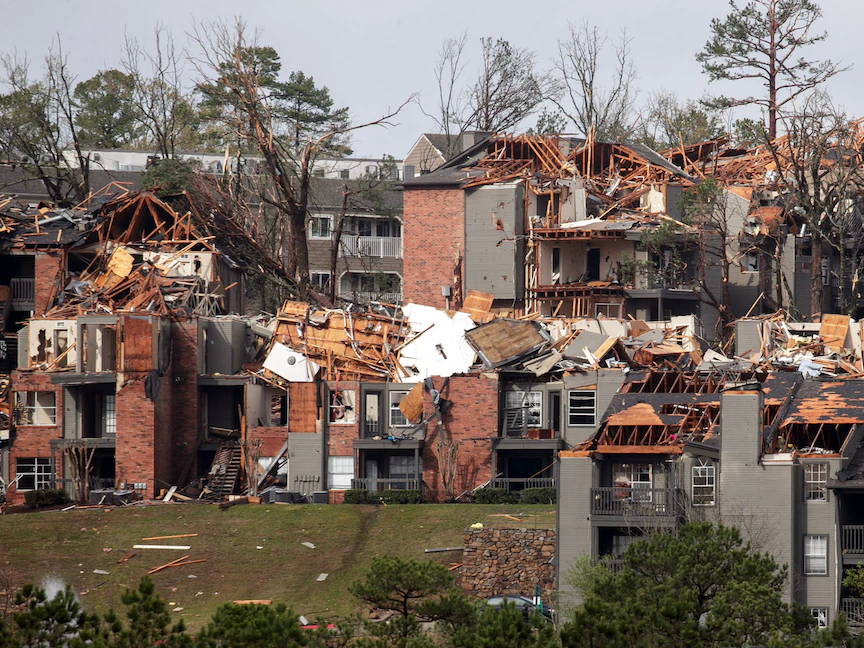 وأظهرت لقطات، تم تصويرها من الجو وبثتها قناة "ذا ويذر شانيل"، أضراراً جسيمة بمنطقة ليتل روك إذ سقطت سقوف وجدران عدة منازل وانهار بعضها تماماً بالإضافة إلى تناثر سيارات منقلبة في الشوارع.