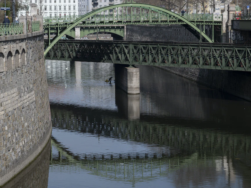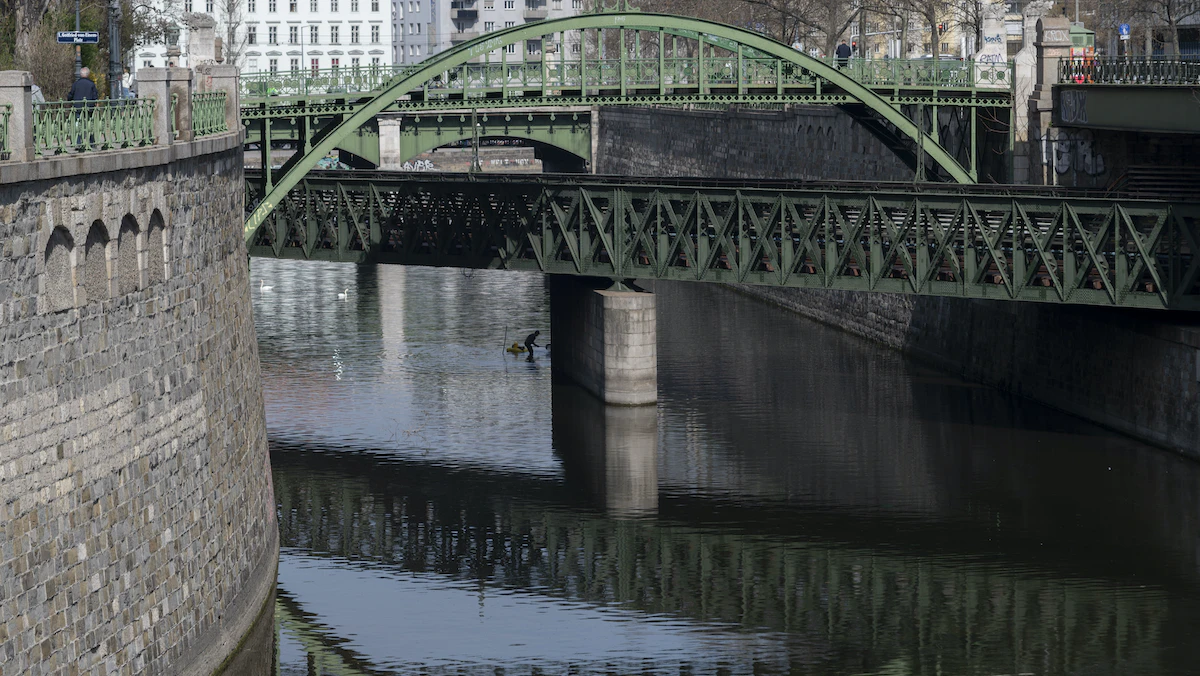عامل ينقل نباتات القصب قبل زراعتها عبر نهر فيينا. 23 مارس 2023 - AFP