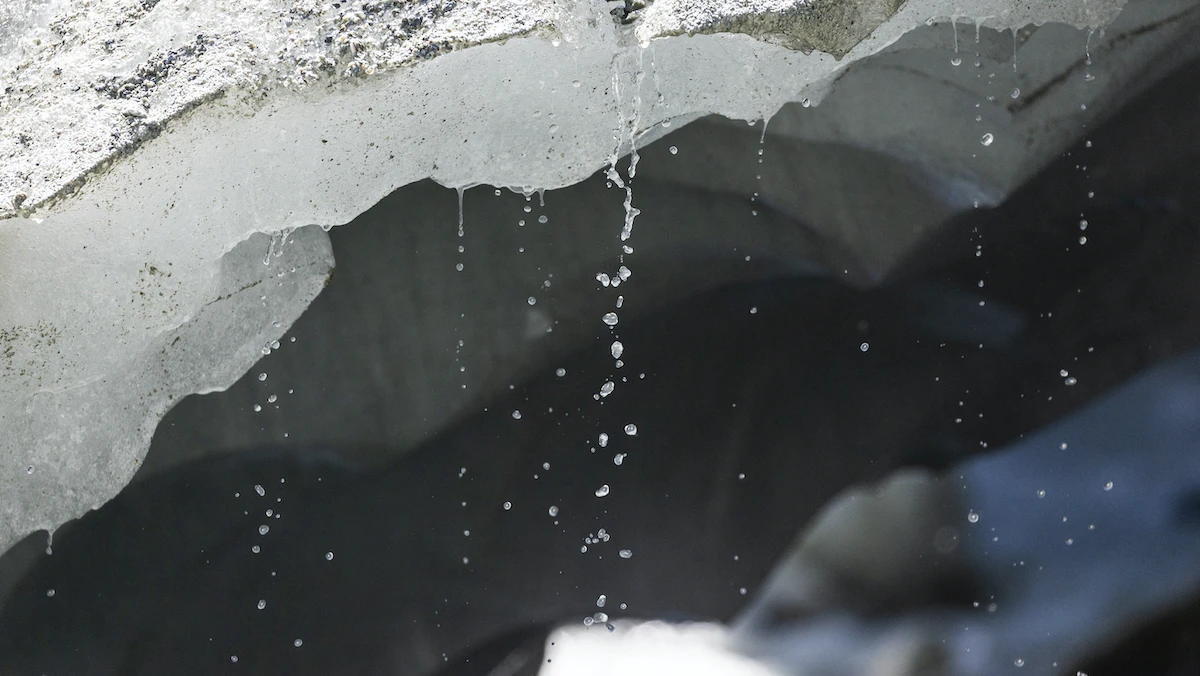 ذوبان الجليد في نهر مونت ماين الجليدي في فيربيل بالقرب من إيفولين بسويسرا. 29 أغسطس 2022 - REUTERS