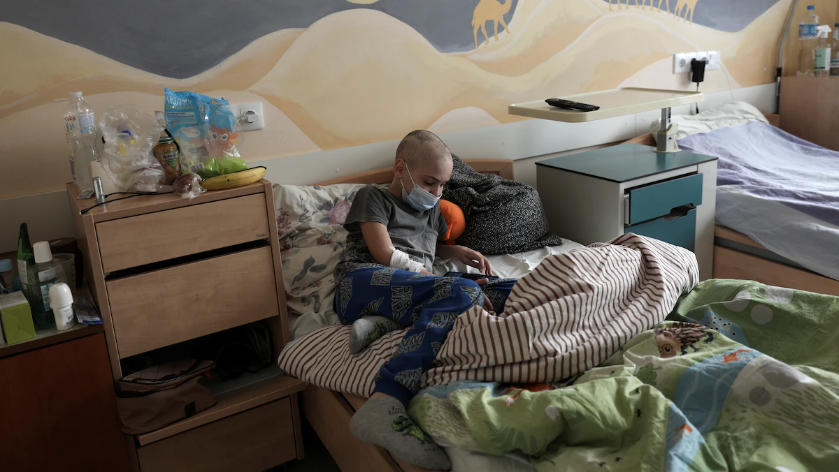 مريض على سريره في عيادة الأورام بمركز طب الأطفال الغربي الأوكراني التخصصي في لفيف بأوكرانيا. 9 مارس 2022 - REUTERS