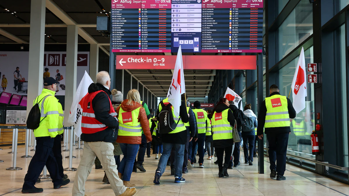 دعت نقابة فيردي الألمانية إلى إضراب ليوم واحد، الاثنين المقبل، بين موظفي الأمن بمطار برلين في إطار نزاع دائر حول الأجور، مما دفع المطار إلى إلغاء جميع رحلات المغادرة في ذلك اليوم.