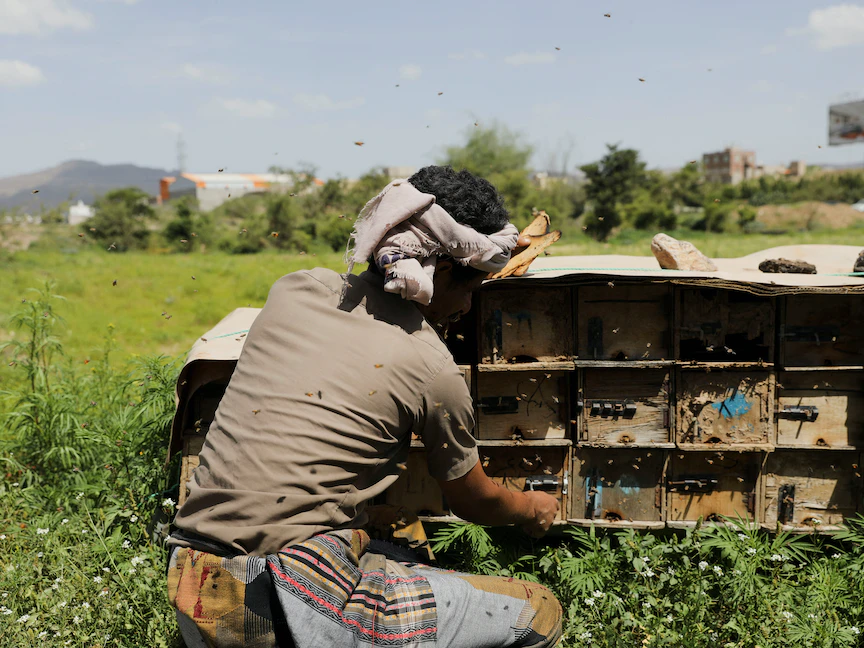يتنقل نحالون يمنيون كثيراً في أنحاء البلاد بخلايا النحل الخاصة بهم على مدار العام، بحثاً عن ظروف جوية مثلى مفيدة للنباتات والزهور، وبالتالي لإنتاج كميات معقولة وجيدة من عسل النحل، وسط تقلبات جوية شديدة سببها تغير المناخ.