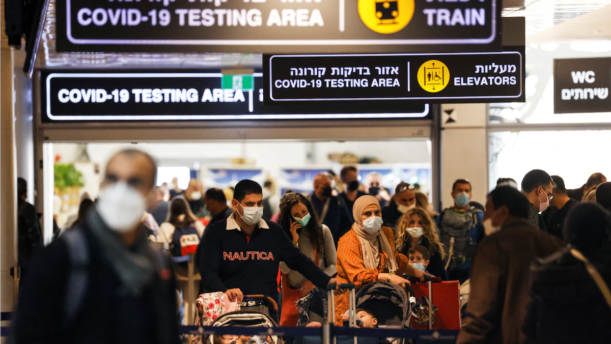 مسافرون يغادرون منطقة اختبار فيروس كورونا بمطار بن جوريون الدولي في إسرائيل. 28 نوفمبر 2021 - REUTERS