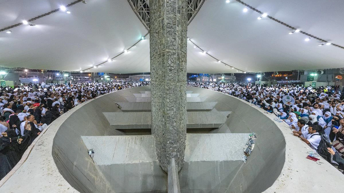 ومنذ ساعات الصباح الأولى، شقّت مجموعات من المصلّين طريقها عبر وادي منى لرمي 7 حصوات على مجسّم يُجسّد غواية الشيطان.
