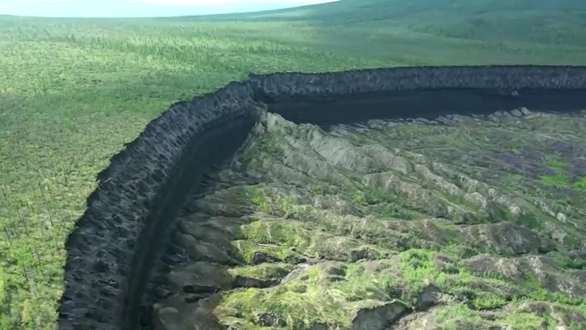 كشف مقطع فيديو تم تصويره بطائرة مسيرة تفاصيل حفرة باتاجايكا التي يبلغ طولها كيلومتراً واحداً في أقصى شرق روسيا، وتشكل أكبر منخفض صقيعي في العالم، والمعروفة محلياً باسم "بوابة العالم السفلي".