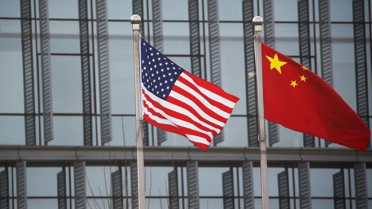 علما الولايات المتحدة والصين أمام شركة أميركية في بكين - REUTERS