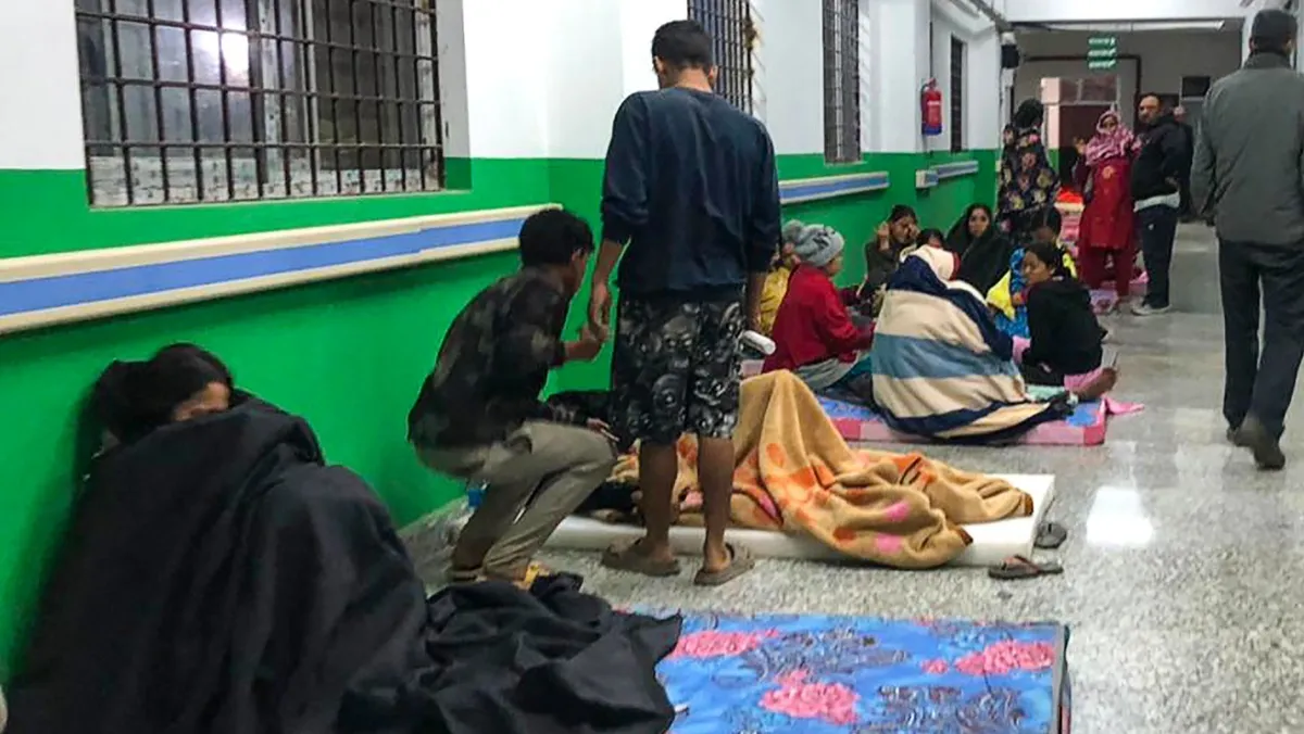 ناجون من الزلزال في ممر مستشفى بمنطقة جاجاركوت غرب نيبال. 4 نوفمبر 2023 - AFP