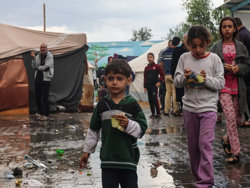 خيام غارقة في الوحل، ونازحون يحاولون منع تدفق مياه الأمطار إلى مأواهم المتداعي، وباعة حلوى يطهونها على الحطب. هكذا يبدو المشهد الإنساني للنازحين بمدينة خان يونس في قطاع غزة، بعد هطولٍ غزيرٍ للأمطار.