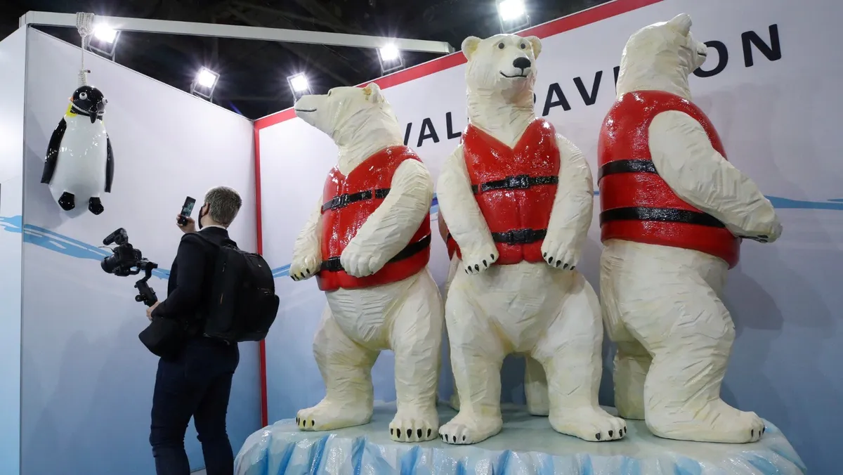 شخص يتفقد أحد أجنحة معرض على هامش مؤتمر الأمم المتحدة لتغير المناخ "كوب 26" في جلاسكو بأسكتلندا. 1 نوفمبر 2021 - Reuters