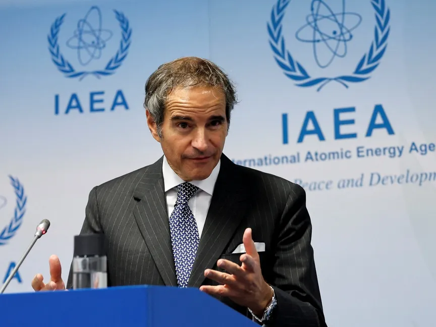 المدير العام للوكالة رافائيل جروسي خلال مؤتمر صحافي في فيينا. 22 نوفمبر 2023 - Reuters