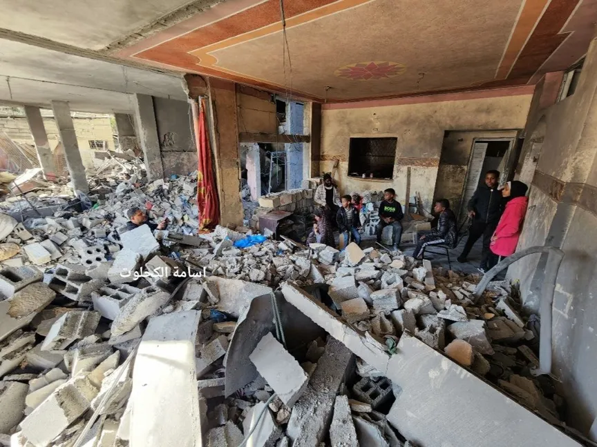 ونشر الصحافي أسامة الكحلوت، صوراً لعائلة بريك التي تعيش فوق ركام منزلها وبين جدرانه المحطمة، رغم تهديدات الجيش الإسرائيلي المتكررة بإخلاء هذه المنطقة.
