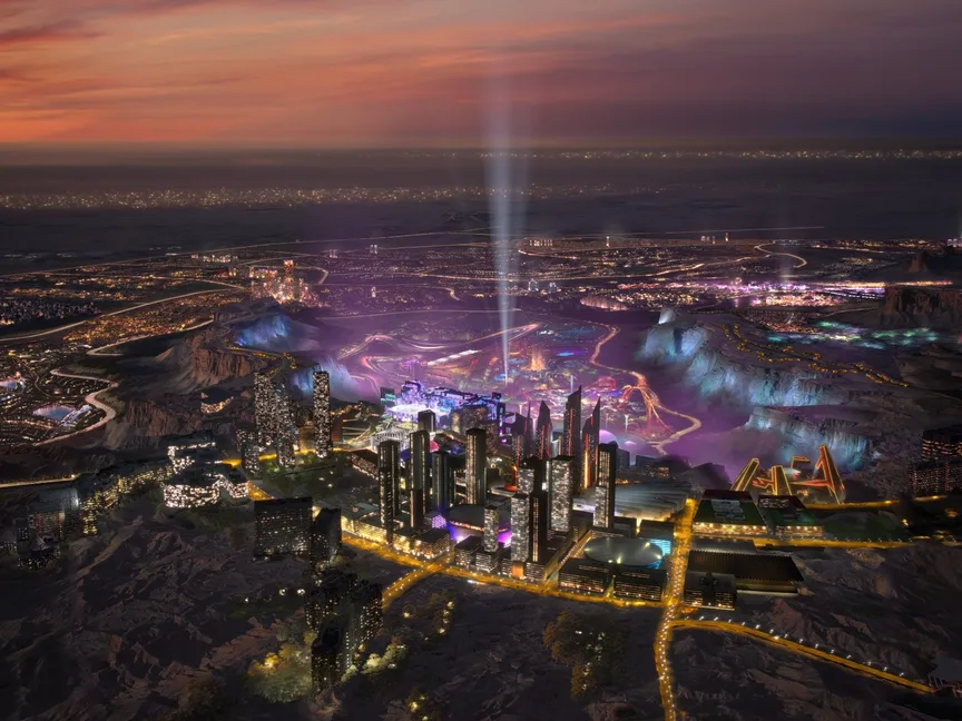 جانب من تصميم مدينة القدية التي تبلغ مساحتها 360 كيلو متر مربع. 7 ديسمبر 2023 - الشرق