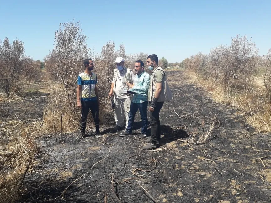 موظفون في مديرية الزراعة بشمال غزة يتفقدون أثار العدوان الإسرائيلي على قطاع الزراعة في غزة - facebook/ وزارة الزراعة في غزة