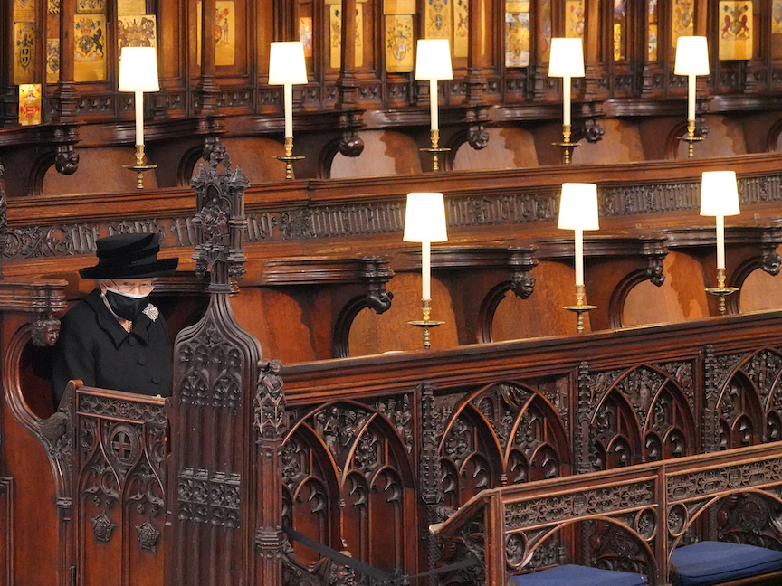 وساعدت الظروف على تحقيق رغبة دوق إدنبرة في تجنب الضخامة في تشييعه، إذ حضر المراسم 30 شخصاً فقط من أفراد العائلة المالكة والأصدقاء المقربين، بدلاً من 800، ووضعوا الكمامات ووقفوا متباعدين، بموجب القواعد الصحية في إنكلترا.