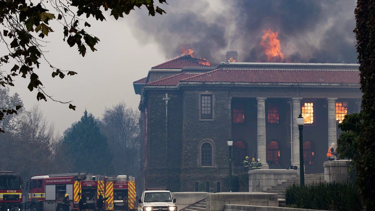 وأفاد مراسلو وكالة فرانس برس في المكان أن الحريق أتى على مطعم قرب تمثال الرمز الاستعماري البريطاني سيسيل رودس.