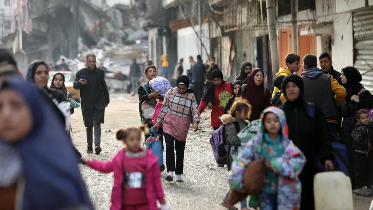 فلسطينيون يغادرون منازلهم في طريقهم إلى "مناطق آمنة" بينما يحملون أمتعتهم مع استمرار الهجمات الإسرائيلية على حي الزيتون في مدينة غزة. 20 فبراير 2024 - AFP