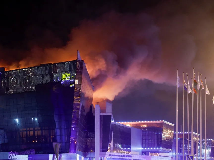 أعلن جهاز الأمن الفيدرالي الروسي، الجمعة، أن المعلومات الأولية تشير إلى سقوط 40 شخصاً وإصابة أكثر من 100 آخرين جرّاء هجوم "إرهابي" على قاعة حفلات بمركز "كروكوس سيتي هول" بضواحي موسكو، بينما ذكر موقع "بازا" الإخباري أن عدد الضحايا ارتفع إلى 62 شخصاً، فيما أعلن تنظيم "داعش" مسؤوليته عن الهجوم.