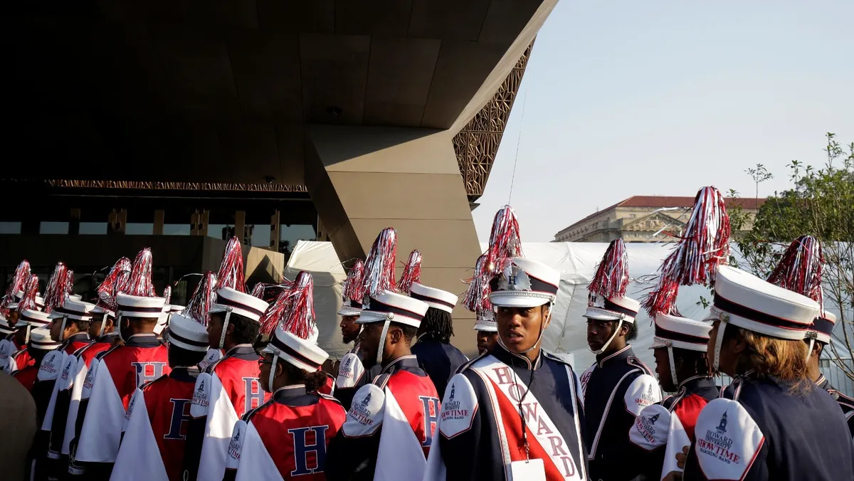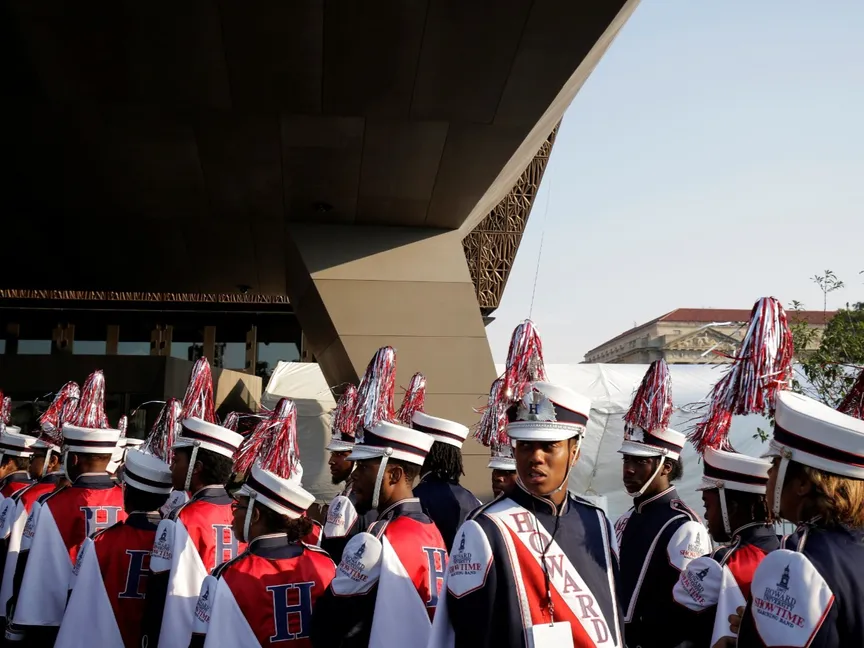 عدد من طلاب جامعة هوارد يحضرون افتتاح متحف سميثسونيان الوطني للتاريخ والثقافة الأميركية الإفريقية في واشنطن، الولايات المتحدة، 24 سبتمبر 2016 - Reuters