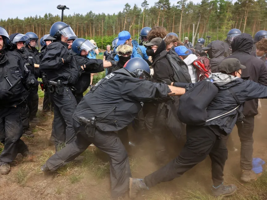 شهدت بلدة جرونهايده بالقرب من العاصمة الألمانية برلين، الجمعة، اشتباكات بين قوات الشرطة ومحتجين ضد توسع مصنع شركة السيارات الكهربائية "تسلا"، بعد محاولة بعضهم اقتحام المنشأة، فيما ندد المدير التنفيذي لـ"تسلا" إيلون ماسك بهذه الاحتجاجات.