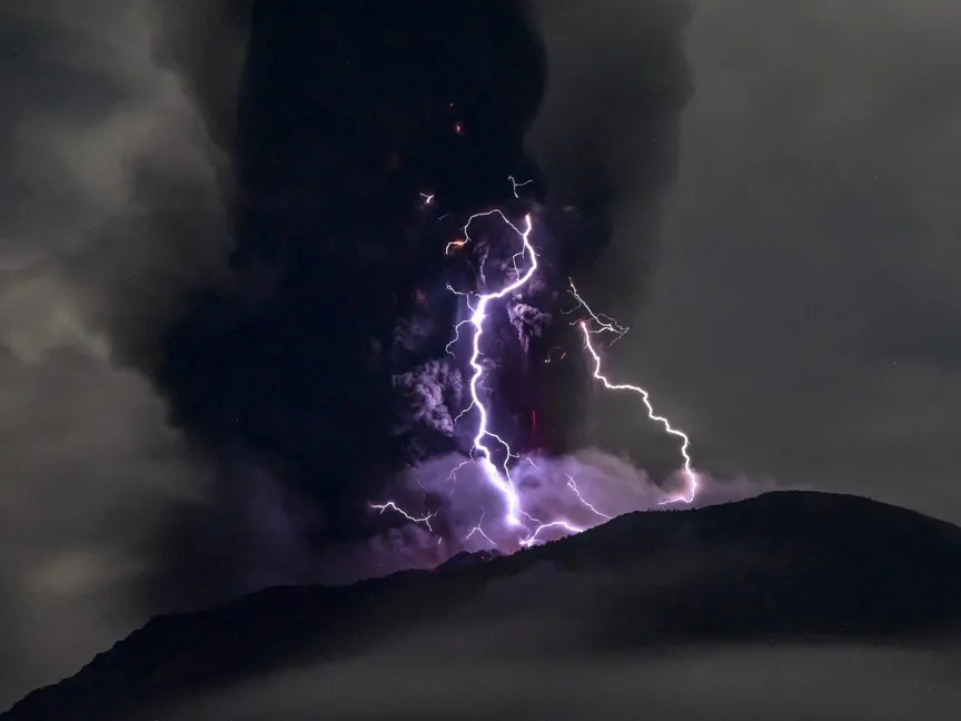 وثار بركان إيبو، مساء السبت، وأرسل رماداً بارتفاع 4 كيلومترات، مع ظهور خطوط من البرق الأرجواني حول فوهة البركان، وفقاً للمعلومات والصور التي نشرتها وكالة علوم البراكين الإندونيسية.