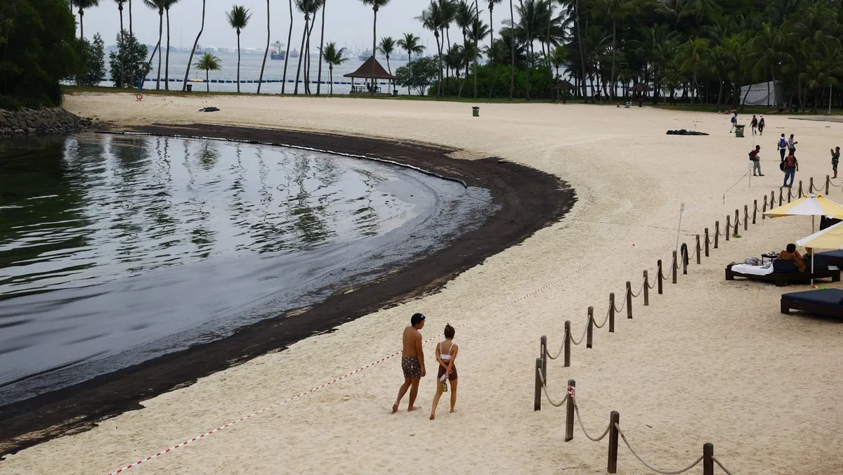أدى تسرب نفطي في ميناء شحن إلى إغلاق الشواطئ في جزيرة سنتوسا السياحية بجنوب سنغافورة، السبت.