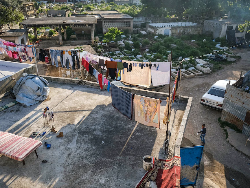 جانب من مقبرة "غرباء" الواقعة في حي يحمل الاسم نفسه في مدينة طرابلس بلبنان، حيث اعتادت عائلات فقيرة مهمشة أن تعيش 14 أبريل 2021   - AFP