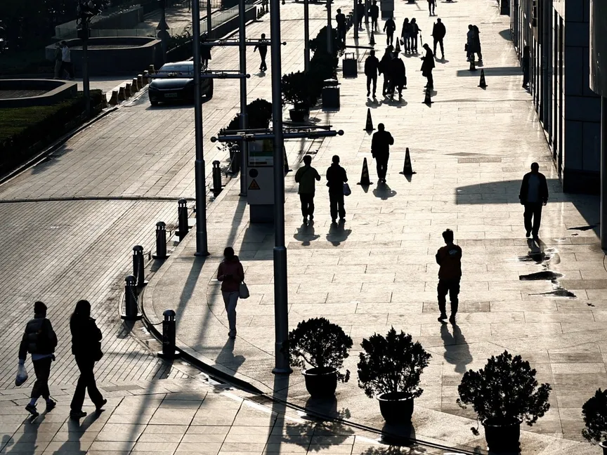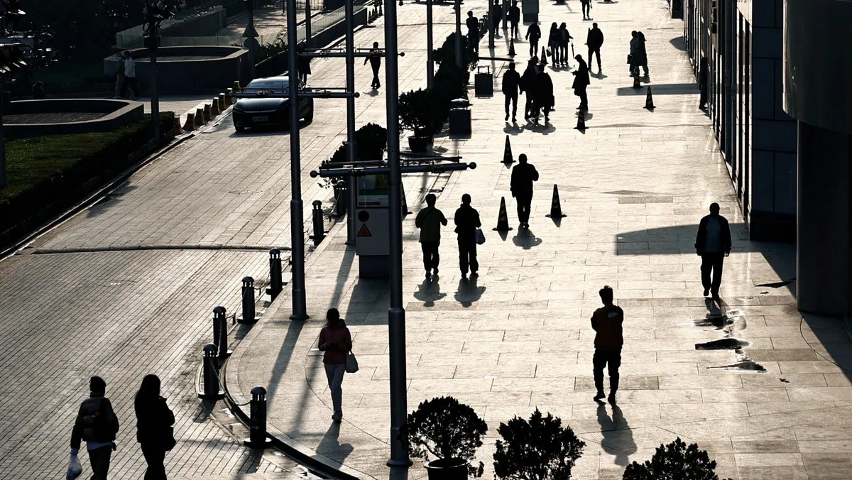 أشخاص يسيرون في أحد شوارع العاصمة الصينية بكين. 10 أبريل 2024 - Reuters
