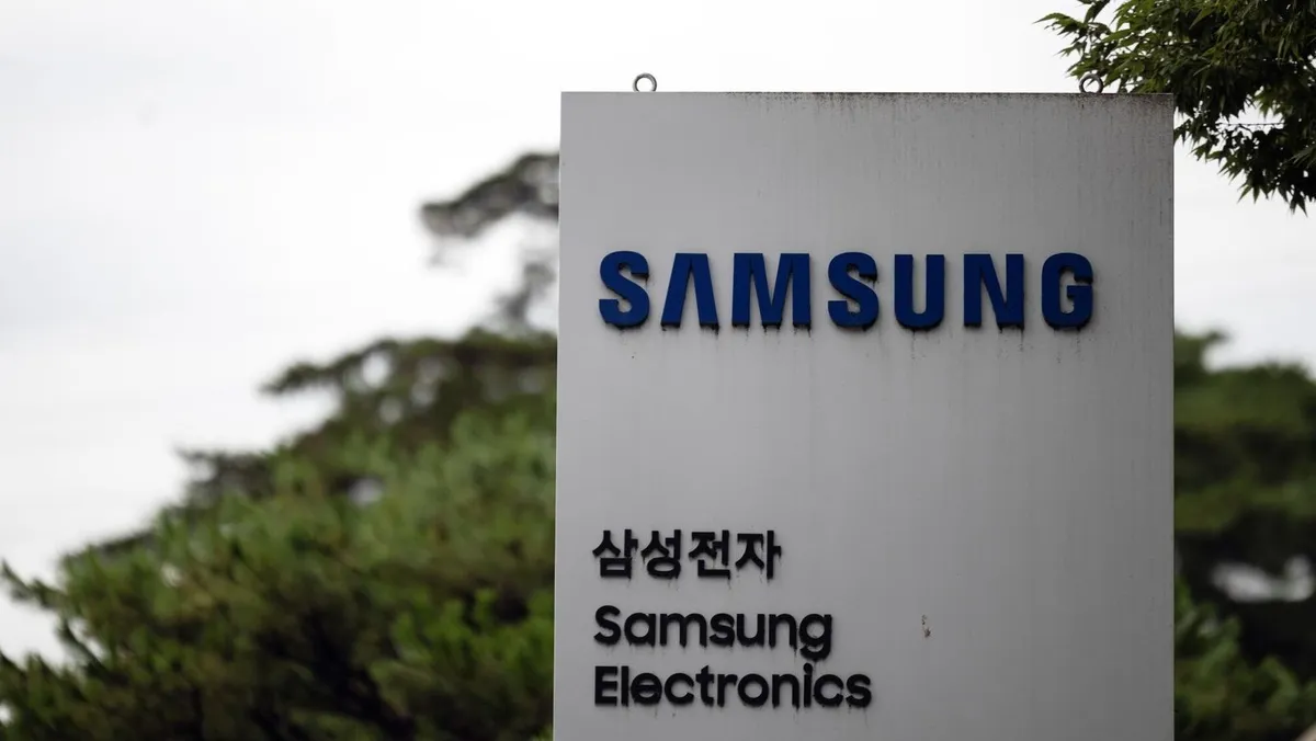 شعار شركة سامسونج خارج أحد مصانعها لإنتاج أشباه الموصلات في يونجين بكوريا الجنوبية. 24 يوليو 2024 - Bloomberg