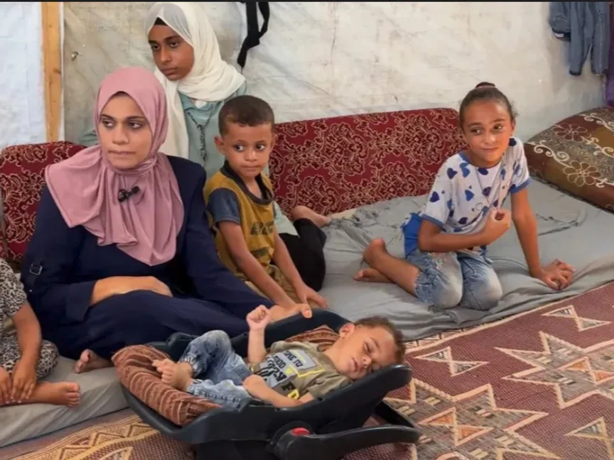 في خيمة إيواء داخل مخيم المواصي للاجئين في خان يونس جنوب قطاع غزة، يجهل الطفل عبد الرحمن أبو الجديان، وضعه الصحي غير القابل للشفاء، بعد إصابته بمرض شلل الأطفال، ليكون أول حالة يسجلها القطاع منذ 25 عاماً.