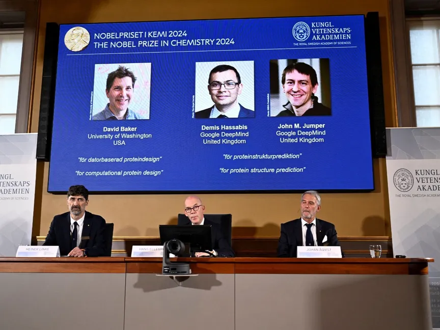 أعلنت الأكاديمية الملكية السويدية للعلوم، الأربعاء، حصول العلماء ديفيد بيكر، وجون جامبر، وديميس هاسابيس، على جائزة نوبل في الكيمياء لعام 2024 عن أبحاثهم في مجالي "التصميم الحاسوبي للبروتين"، و"توقع بنية البروتين".