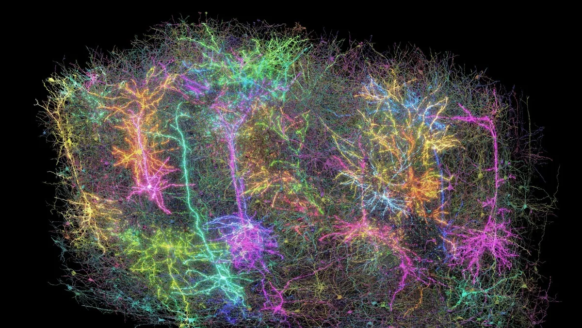 وجُمعت هذه الصور في الأبعاد الثلاثة، واستخدم باحثون من جامعة برينستون الذكاء الاصطناعي والتعلم الآلي لإعادة بناء الخلايا العصبية وأنماط ارتباطها.