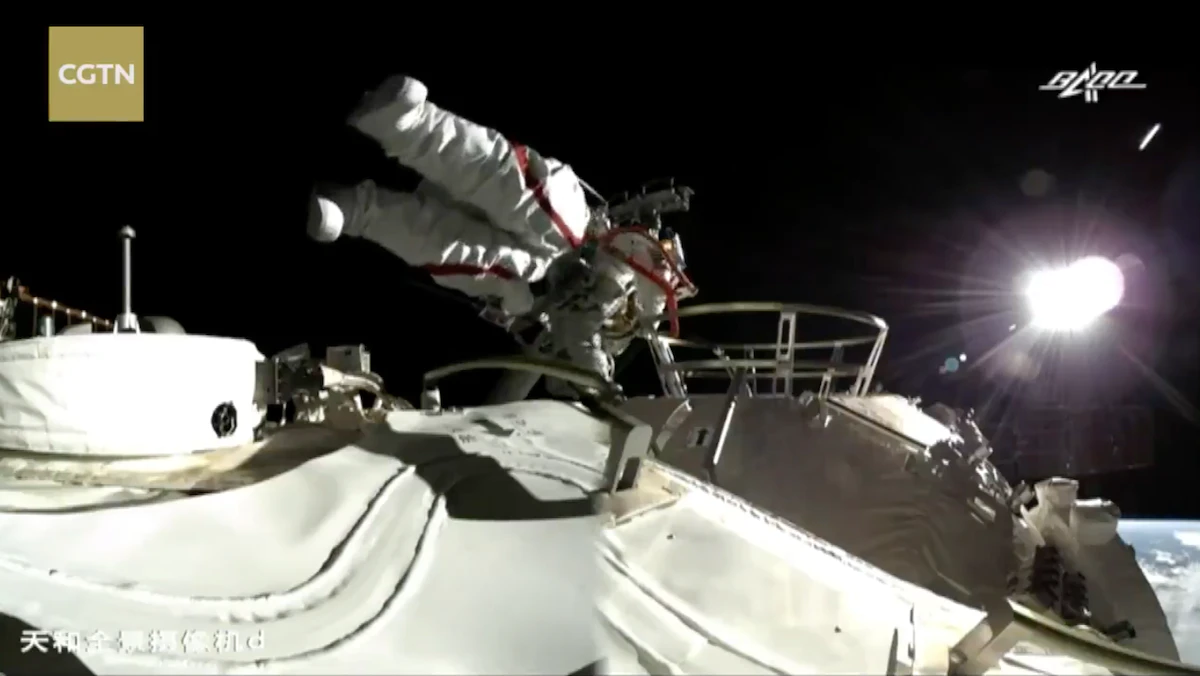 وفي مقطع فيديو بثته وكالة الفضاء الصينية، لوحظ أن ليو بومين، هتف وهو يخرج من المقصورة "واو، المنظر رائع حقاً هنا"، وقبل ذلك كان التلفزيون الصيني عرض لقطات للرائدين، وهما يرتديان زيهما "استعداداً للخروج، وهي بزة صينية الصنع تزن 130 كيلوغراماً".