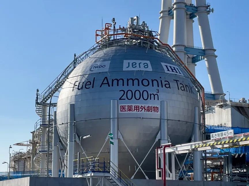 خزان للأمونيا في محطة هيكينان للطاقة الحرارية في اليابان. 13 مارس 2024 - Reuters