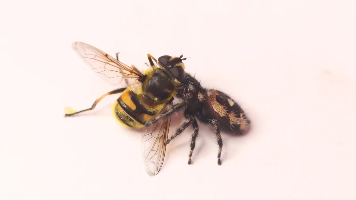 عنكبوت قافز يلتهم ذبابة طائرة - توم ريدر