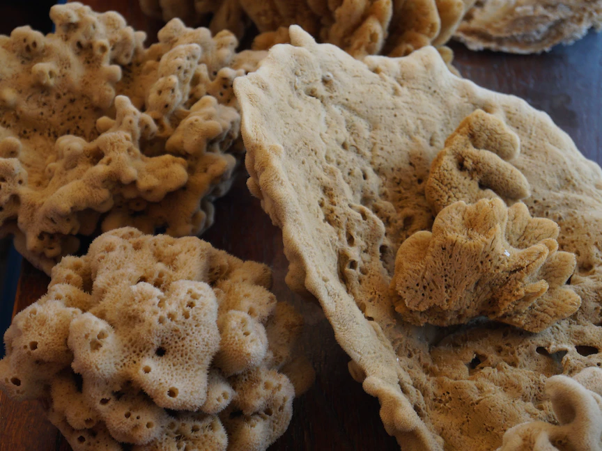 ولاحظت الباحثة وجود هياكل أنبوبية صغيرة في الموقع تحتوي على بلورات الكالسيت معاصرة للشعب المرجانية، تشبه إلى حد بعيد الهيكل العظمي الموجود في الإسفنجات الحديثة.