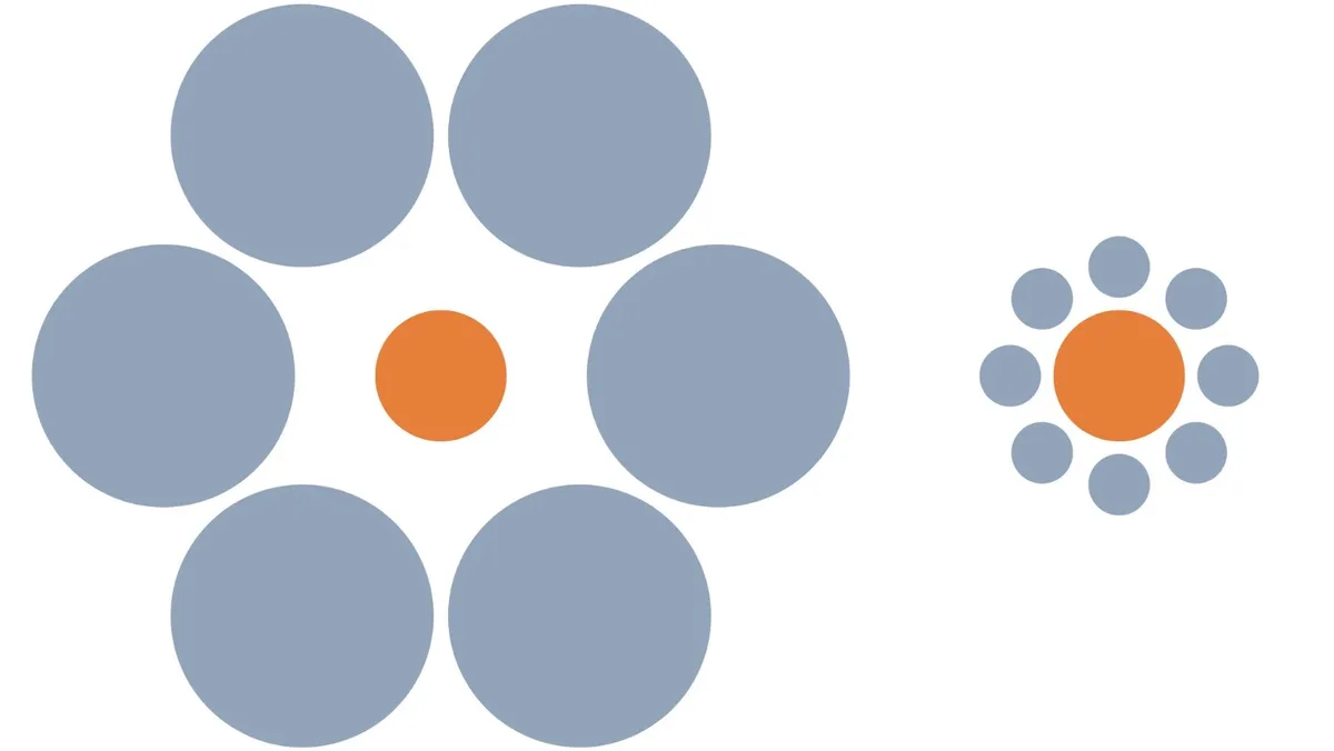 "وهم إيبنجهاوس"، هو أحد أشهر الأوهام البصرية التي تكشف كيف يمكن للدماغ أن يخطئ في تقدير الحجم النسبي للأشياء تبعاً للسياق الذي تعرض فيه.