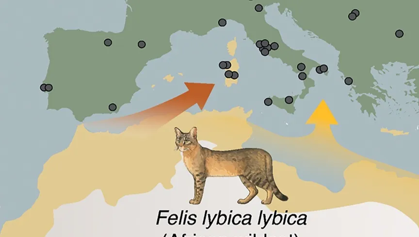 وحددت البيانات الجينية مرحلتين لدخول القطط إلى أوروبا من شمال إفريقيا. فمنذ ما يقرب من 2200 سنة، جلب البشر القطط البرية من شمال غرب إفريقيا إلى جزيرة سردينيا، التي تنحدر قططها البرية الحالية من القطط المهاجرة.