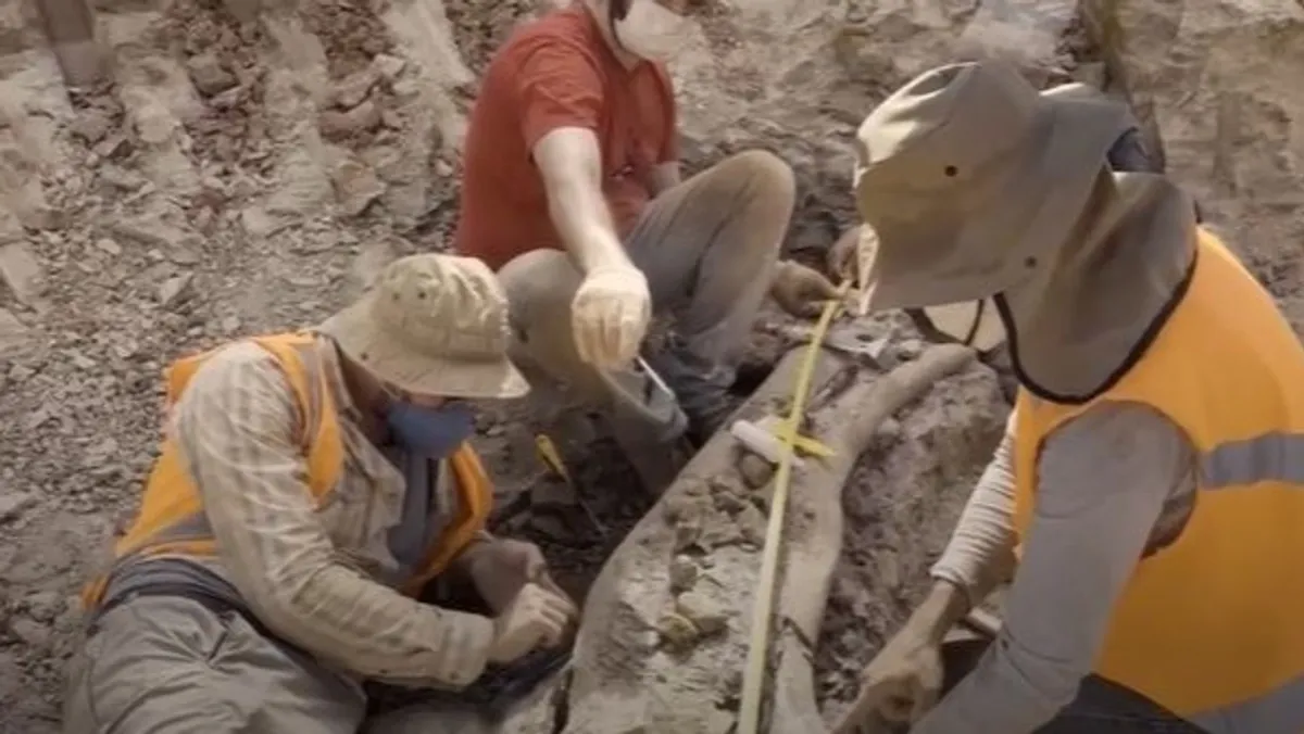وتضم البقايا عظمة فخذ يبلغ طولها حوالي 1.5 متر، ما ساعد الباحثين على تقدير طول الديناصور بنحو 20 متراً.