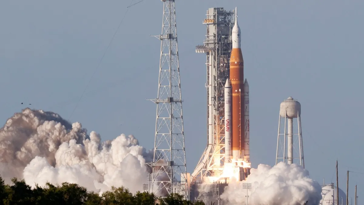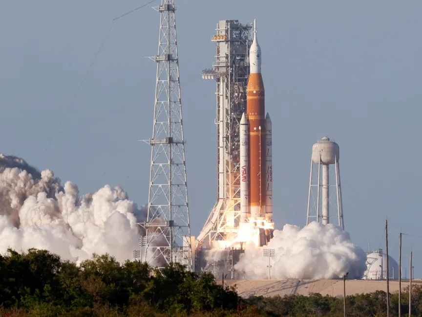 وانطلق الصاروخ من مركز كنيدي الفضائي التابع لناسا في فلوريدا، على بعد منصة واحدة فقط من المكان الذي انطلق منه آخر رواد فضاء متجهين إلى القمر في إطار برنامج أبولو الأميركي قبل أكثر من نصف قرن.