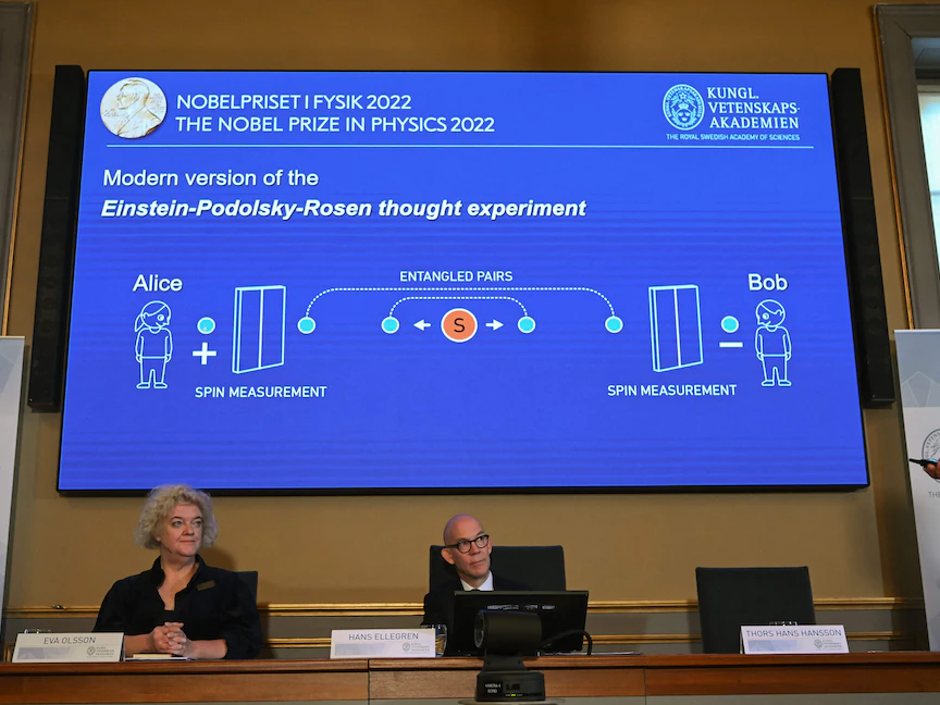 يعتمد بحث الفائزين على أعمال جون ستيوارت بل، وهو فيزيائي أيرلندي وضع مُبرهنة رياضية تُعالج مسألة ما إذا كانت الجسيمات -مهما تباعدت عن بعضها البعض- قادرة على العمل بتناسق فيما بينها.