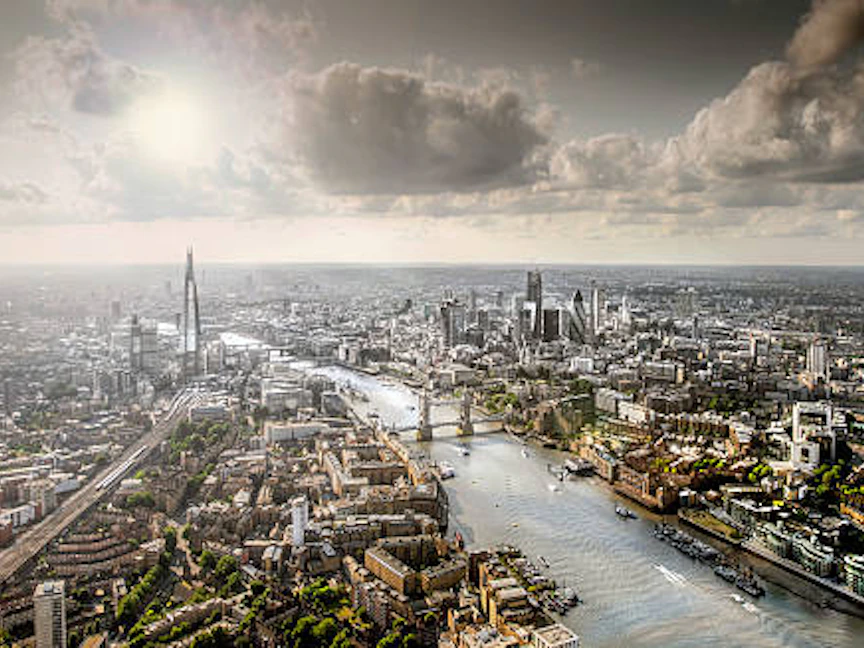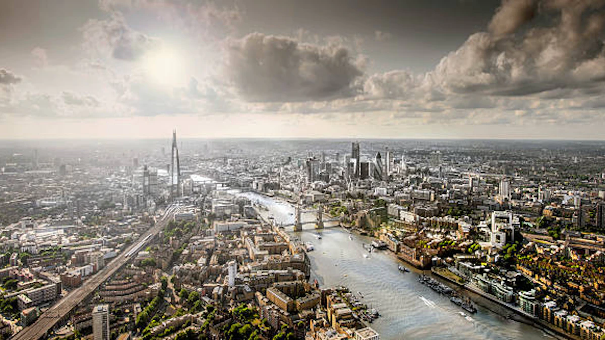 صورة غير مؤرخة لمنظر جوي يظهر نهر التايمز في لندن. - Getty Images