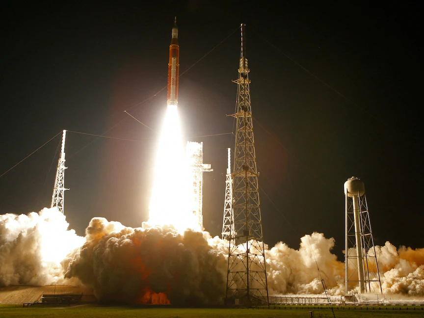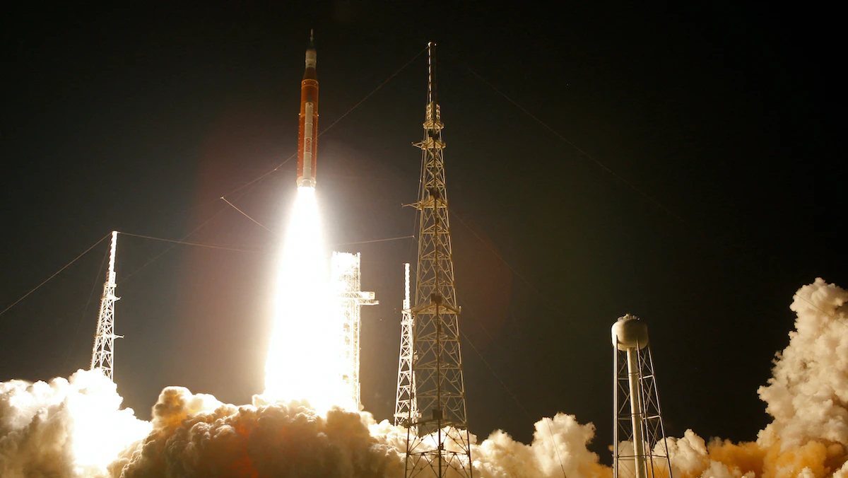 وانطلقت "أوريون" في 16 نوفمبر من مركز كينيدي للفضاء في كيب كنافيرال بولاية فلوريدا، على قمة صاروخ (نظام الإطلاق الفضائي)، وهو صاروخ من الجيل الثاني شاهق الارتفاع تابع لـ"ناسا"، وهو الآن أقوى صاروخ في العالم والأكبر الذي تصنعه "ناسا" منذ الصاروخ "ساتورن 5" خلال حقبة مهمات "أبولو".