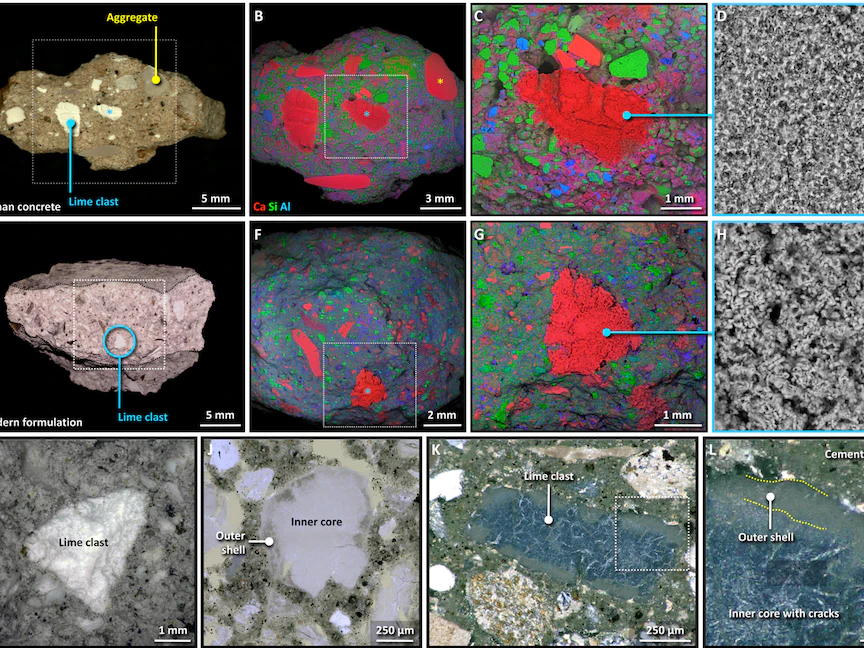 إلا أن البحث الجديد كشف أن وجود الجير كان عن عمد، بل يؤكد أيضاً أن نسب خلطه بالخرسانة ظلت ثابتة في كل المواقع والمباني.