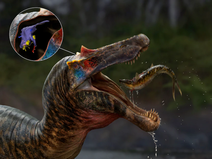 والسبينوصورات هي مجموعة غير عادية من الديناصورات ذوات الأقدام، التي تملك فكاً طويلاً مثل التمساح وأسناناً مخروطية؛ ويعتقد العلماء أن لدى ذلك النوع تكيفات فسيولوجية مُخصصة تساعدها على صيد الفرائس المائية، إلا أن الدراسة الجديدة تُحطم تماماً ذلك الزعم.